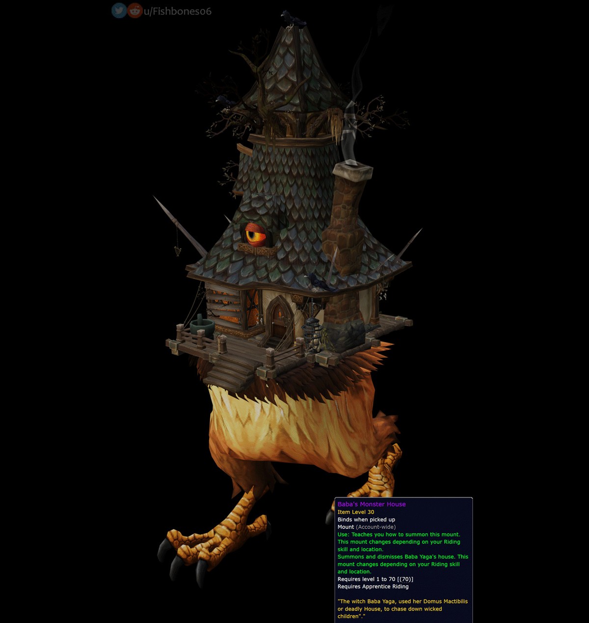 Теперь, когда жильё в World of Warcraft стало реальностью, старый концепт зажил новой жизнью. Представьте, как весь рейд садится на это верхом. А если таких целая стая, то можно устроить собственные хроники хищных городов.