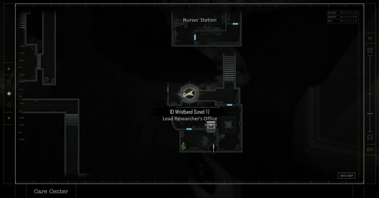 Чтобы добраться до кабинета, войдите в Восточное крыло и двигайтесь на север через Процедурный кабинет и Процедурную (предварительно уничтожив противника с помощью первого инжектора). Затем пройдите на юг мимо Зала ожидания и поднимитесь по лестнице.