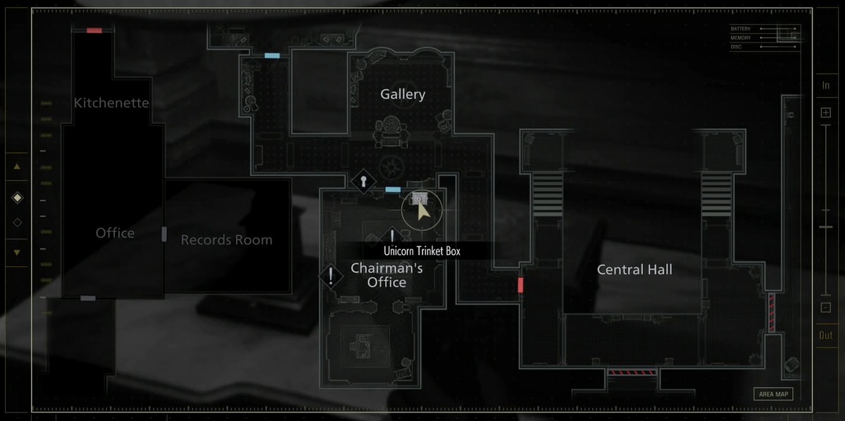 Запертая дверь с нелепым механизмом открытия – настоящая классика серии, и Resident Evil Requiem не стала исключением. Чтобы попасть в Гостиную через дверь с единорогом, никакие обычные ключи не понадобятся: вместо них шкатулка с секретом и спрятанный внутри драгоценный камень.