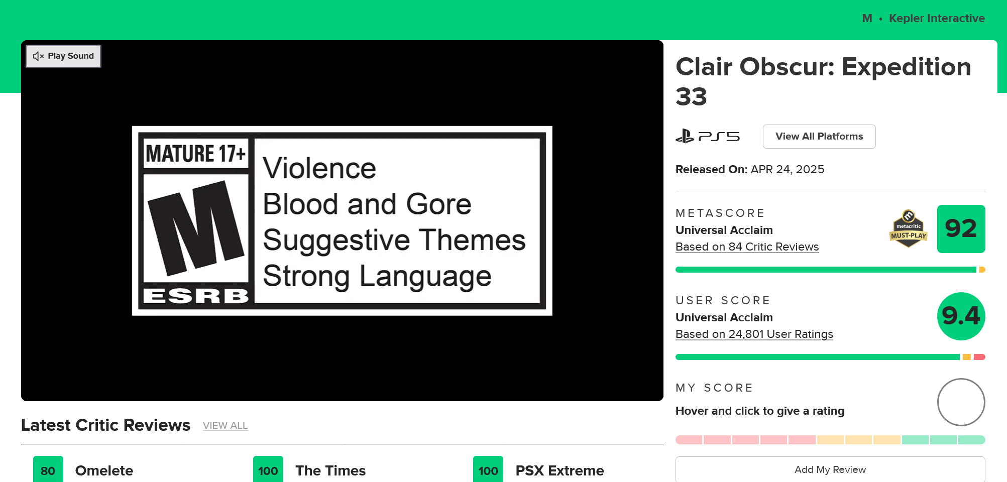 Resident Evil Requiem стремительно ворвалась в пользовательский топ всех игр Metacritic: оценка игры достигла 9.5 баллов, что сделало ее лидером пользовательского топа сайта. У Clair Obscur: Expedition 33 на основной странице топа первое место, но на личной странице – 9.4 балла от игроков.