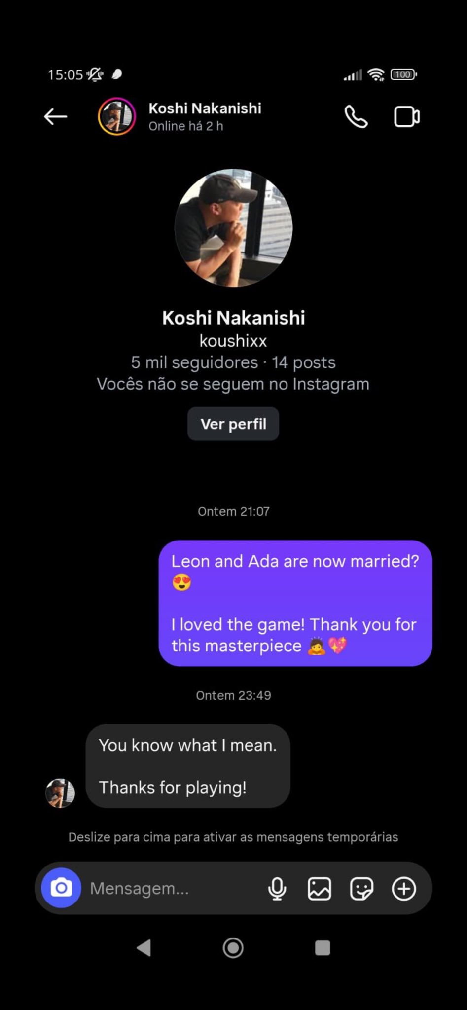 Оказалось, что Леон женат на Аде Вонг. Об этом фанатам рассказал сам директор игры Коси Никаниси. Нескольким фанатам он ответил в личных сообщениях на вопрос о пассии Леона. Хоть он и не сказал прямого, что это Ада Вонг, но ответы директора указывают именно на это – Леон женился на Аде. По крайней мере на изображениях ниже он точно не отрицает, что это она.