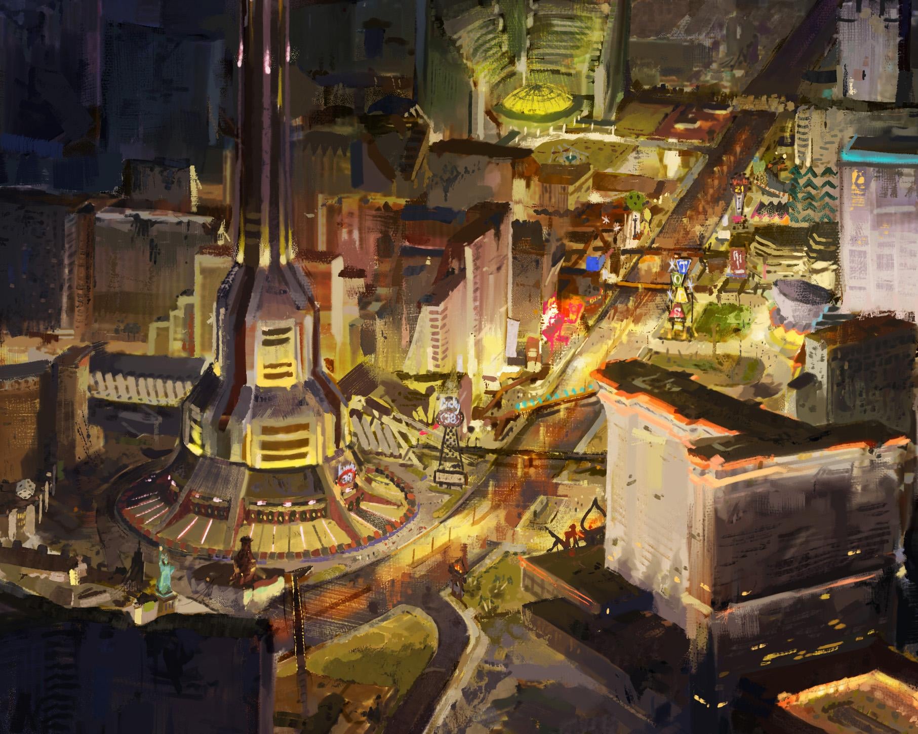 Начал он с Даймонд-Сити из Fallout 4 – крупнейшего поселения Содружества, расположенного на территории бостонского стадиона Фенуэй-Парк. Однако новая работа оказалась куда амбициознее – на этот раз Ганшерт взялся за весь Стрип из Fallout: New Vegas.