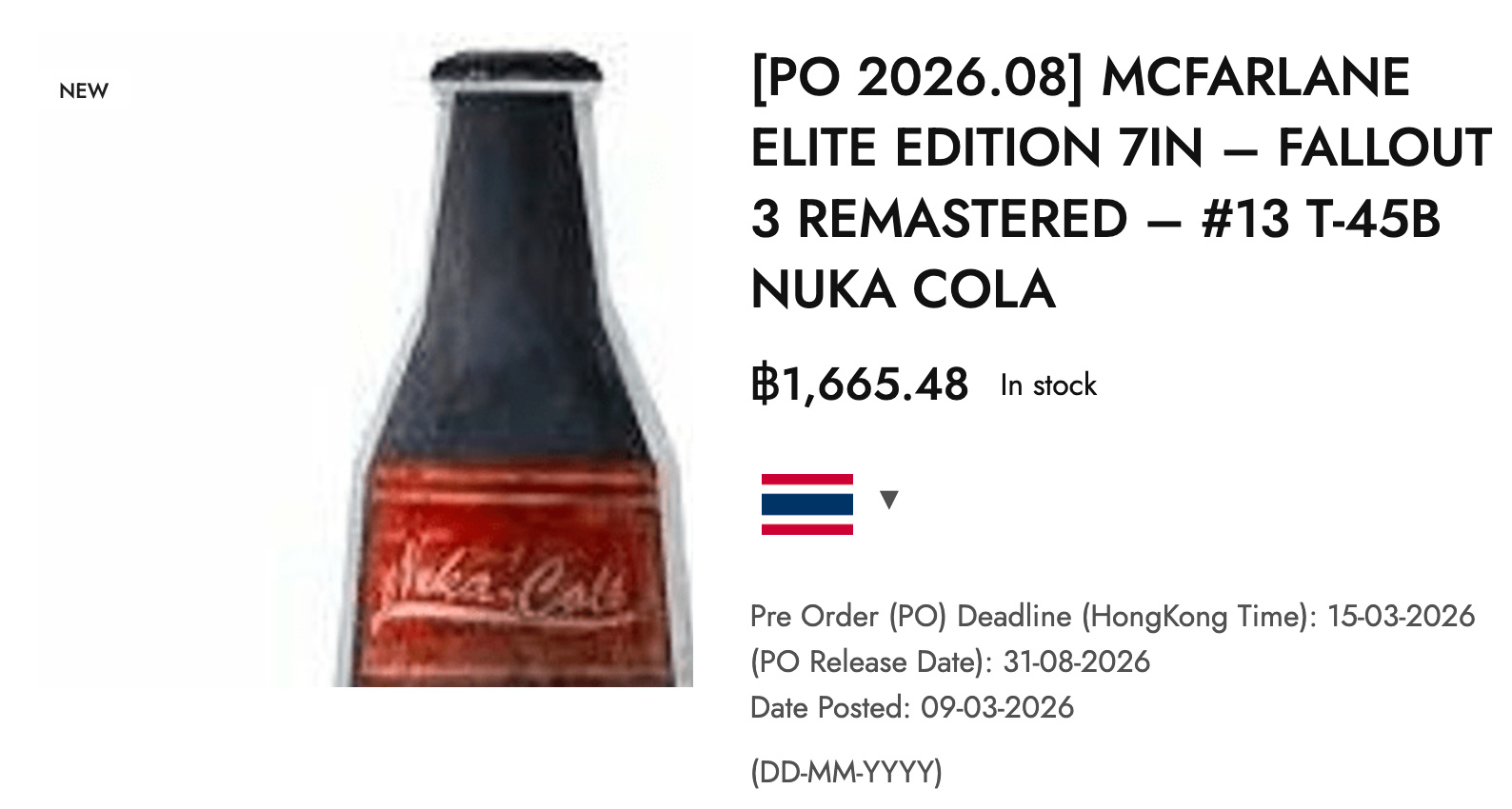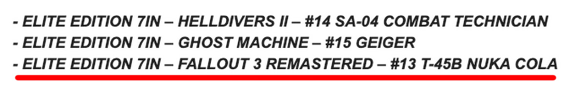 Утечка произошла через сайт Bro Depot – розничную площадку для коллекционеров, – и была замечена изданием Toy News International, после чего разошлась по Reddit. Среди листингов фигурок от McFarlane Toys обнаружилась запись – "Elite Edition 7in — Fallout 3 Remastered — #13 T-45B Nuka-Cola". Речь идёт о 7-дюймовой фигурке силовой брони T-45B в раскраске "Нюка-Кола" под брендом Fallout 3 Remastered.