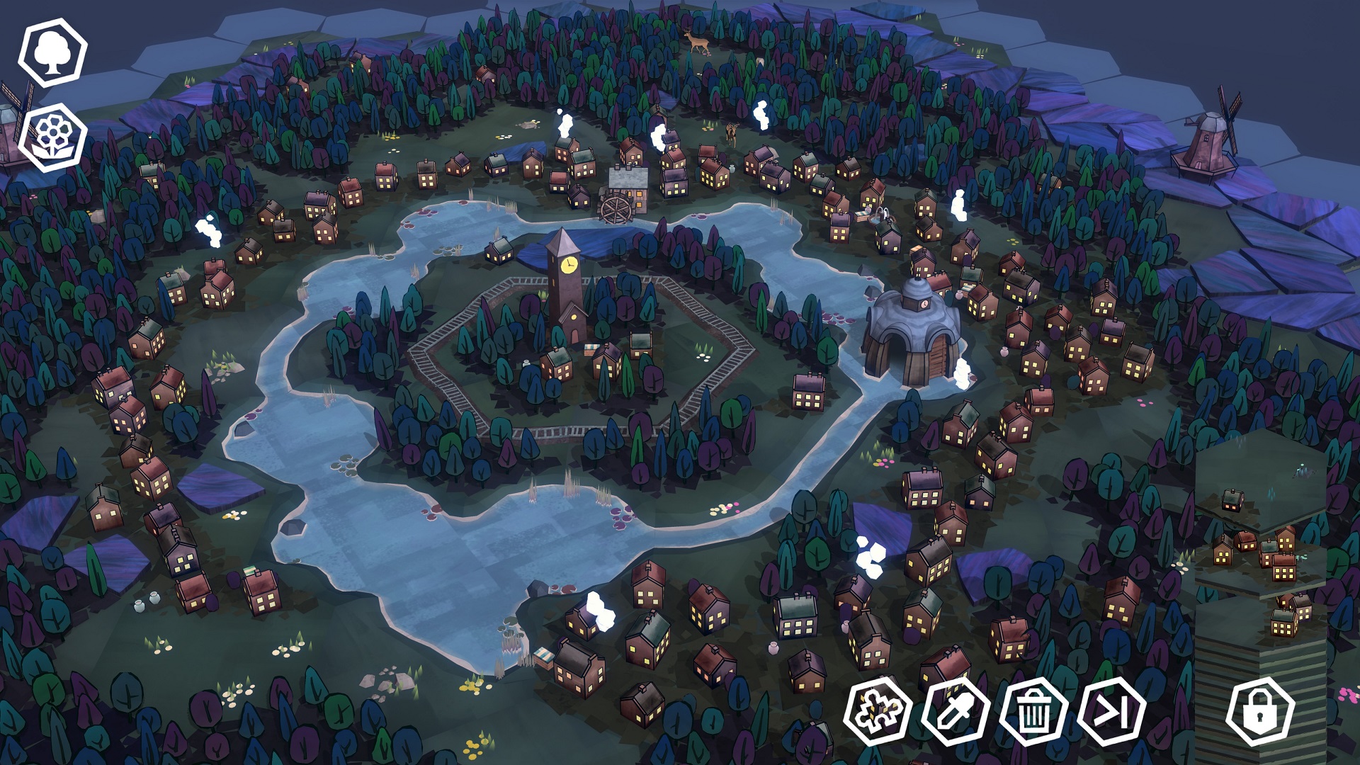 Второй значимой частью обновления станет ночной режим, который давно просило сообщество. В этом режиме яркая дневная палитра сменяется мягкими синими тонами, а тёплый свет из окон домиков освещает ночные деревушки. Режим разработан с прицелом на комфортную игру в вечернее время или при слабом освещении, что особенно уместно для такой расслабляющей игры, как Dorfromantik.