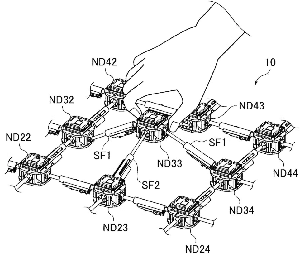 Sony подала патент на принципиально новый тип контроллера, способный имитировать тактильные ощущения на уровне, недоступном для современных геймпадов. Речь идёт об устройстве с деформируемыми кнопками-узлами, соединёнными в единую сетку с помощью шарнирных валов.