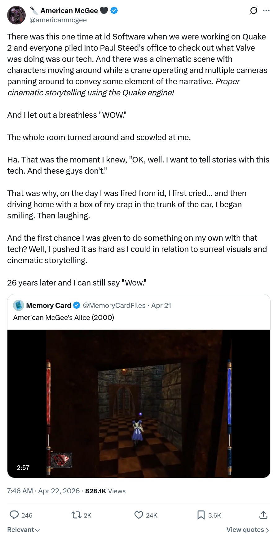 Демо Valve вдохновило создателя Американа Макги создатель Alice и показало, что в id Software ему не место