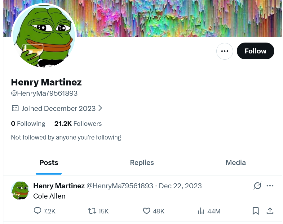 На следующий день после инцидента интернет взбудоражила неожиданная находка: заброшенный аккаунт @HenryMa79561893 в X, единственная публикация которого датируется декабрём 2023 года, содержала лишь два слова – "Cole Allen". Пост набрал миллионы просмотров и породил волну теорий: от обвинений в заранее спланированной мистификации до рассуждений о путешествиях во времени и причастности NASA.